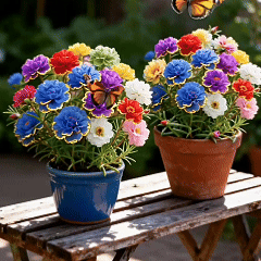 Dann lern jetzt Golden Lace Portulaca kennen – eine Premium-Portulak-Sorte mit luxuriösen, zweifarbigen Doppelblüten und feinem goldenem Rand, der in der Sonne richtig funkelt ✨